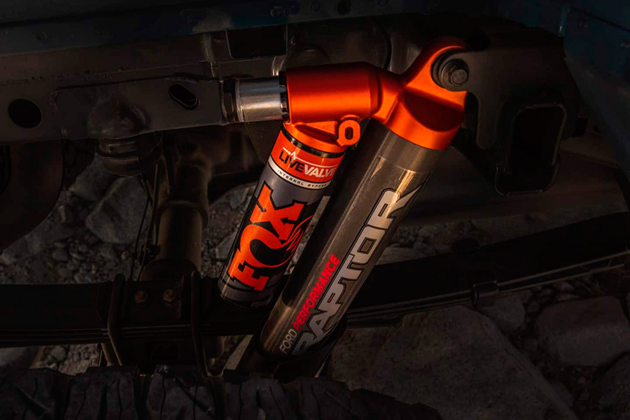 Designers then went to off-road racing shock legend Fox and said, “Give us a racing shock absorber for the late 21st century," and Fox came back with a set of three-inch Rock Shox with Internal Bypass Technology designed just for the Raptor, called Live Valve. Couple these with ride-height sensors that communicate with an integrated computer to give you incredible road-feel and control, whether you're cruising down the highway or crawling over the most intense terrain you can find.