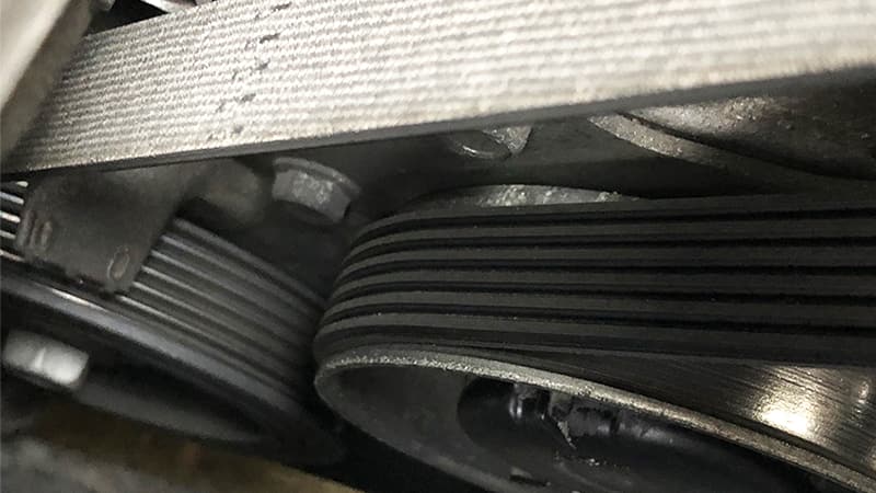 A worn or loose serpentine belt can cause a loud squeal from under the hood, especially when the engine is cold. Source | Lisa Kowite