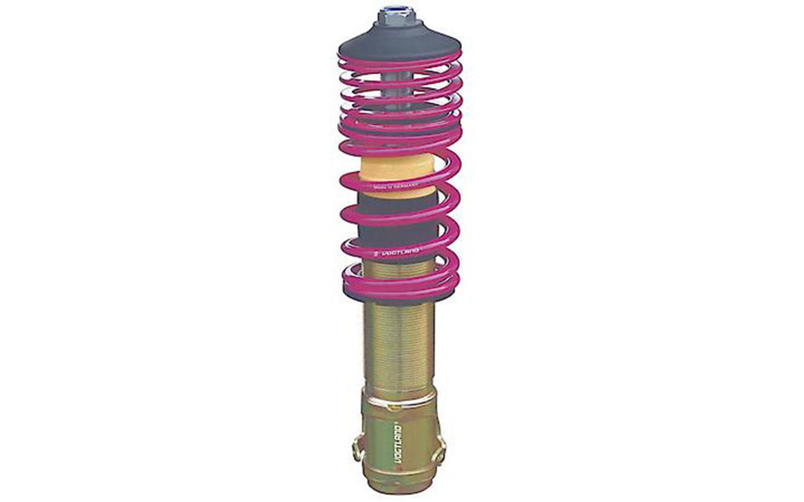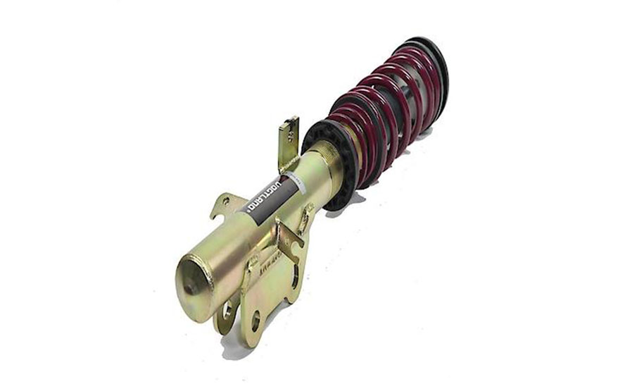 Coilovers are performance suspension parts that replace the shocks and coil springs or the MacPherson struts in your front suspension, and represent a significant update to your muscle car's suspension. They combine the shock absorber and coil spring in a single assembly. The coilover body is threaded and the bottom of the coil rides in a pocket (known as the spring perch) that can be adjusted up or down to raise or lower your vehicle. Making coilovers an even more appealing option is the fact that most can be adjusted to give a firmer or softer ride, as well as to lower the vehicle.